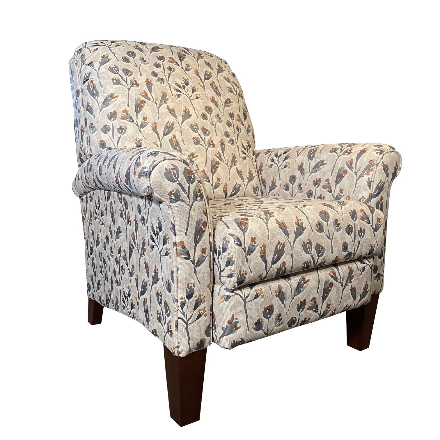 From its softly rolled arms to its sleek modern legs, this recliner can complement your other furniture while every eye will recognize its style. All that will be left is to enjoy relaxation! Make it yours with your choice of fabrics and other available upgrades.