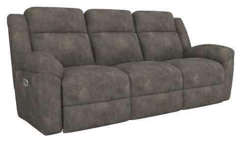 The Joel Power Reclining Sofa with Power Headrest and Power Lumbar features flared arms, lush cushions and comfy, casual style. Pillowy arms welcome you, then press the button to adjust the backs, headrests, chaise seats and legrests—your tv binging just went next-level!Read More