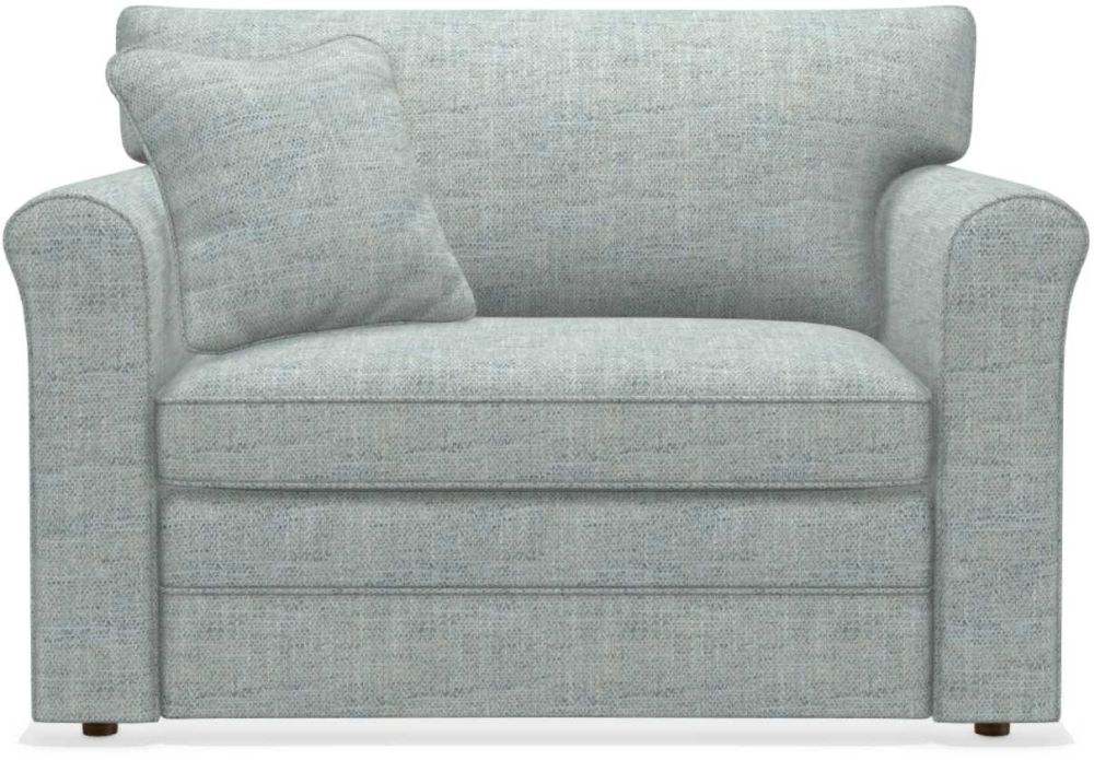 Turn any room into a stylish and functional guest room with the Leah Twin Sleep Chair. Its sleek profile is perfect for smaller spaces, yet it opens up to become a super comfortable twin bed, complete with a Supreme ComfortTM quilted innerspring mattress measuring 5.5” thick. By day, this sleeper is a true beauty too, with curving rolled arms, welt trim and a patented ComfortCore® cushion that provides optimum support for a long or short sit. Make it yours with your choice of fabrics and other available upgrades. Includes one 18” accent pillow.