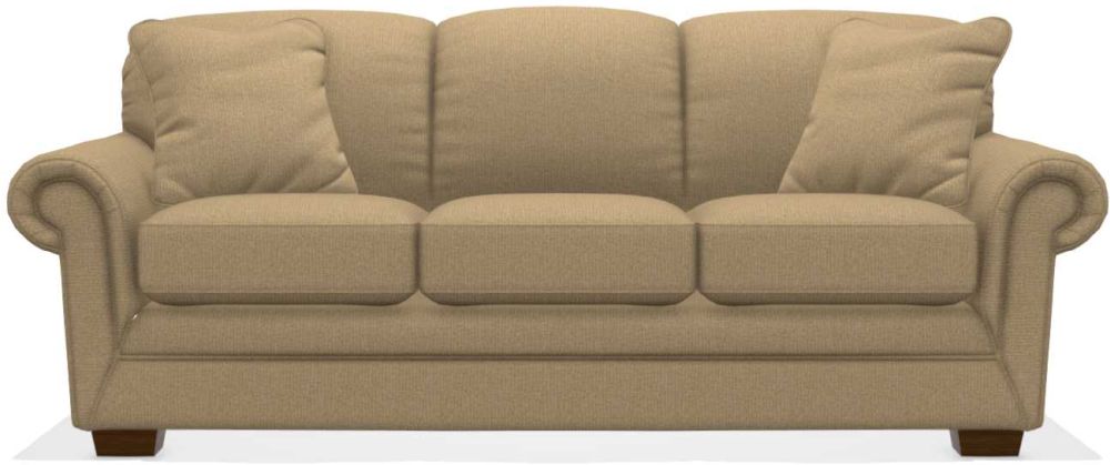 Turn any room into a stylish and functional guest room with the Mackenzie Queen Sleep Sofa. Timeless and on-trend, it features a sophisticated look that blends easily with your existing pieces. Its rolled, pleated arms, foam back and ComfortCore® cushions deliver just the right amount of comfort and support for a short or a long sit. Decorative wood legs add a touch of tradition to complete the look. And, overnight guests will love the Queen size Supreme ComfortTM quilted innerspring mattress that measures 5.5” thick. Make it yours with your choice of fabrics and other available upgrades. Includes two 20” accent pillows. A matching ottoman is available separately.