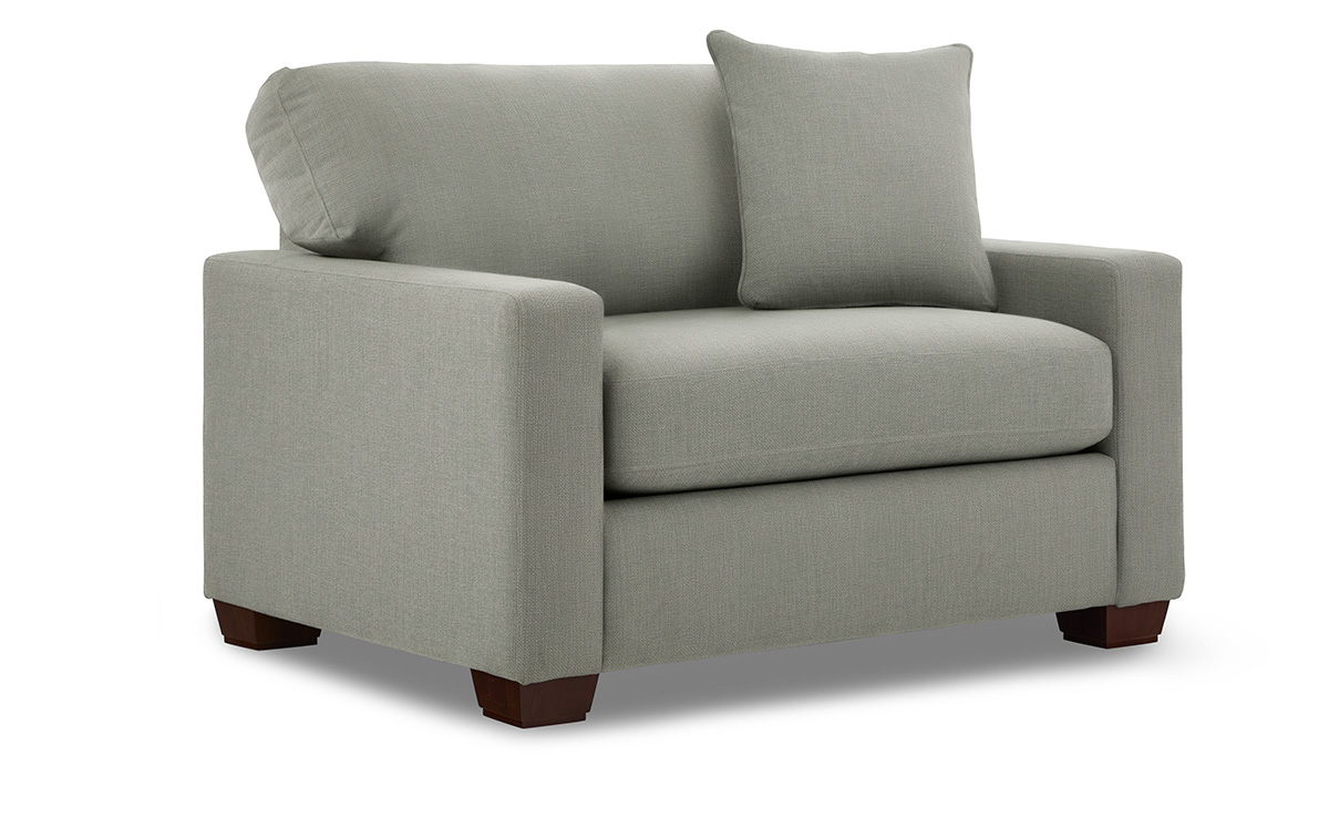 Turn any room into a stylish and functional guest room with the Shiloh Chair 1/2. Its sleek profile is perfect for smaller spaces. This chair 1/2 is a true beauty too, with curving rolled arms, welt trim and a patented ComfortCore® cushion that provides optimum support for a long or short sit. Make it yours with your choice of fabrics and other available upgrades. Includes one 18” accent pillow.