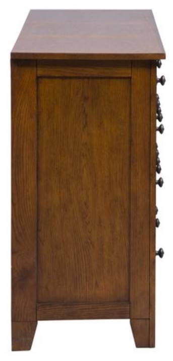Staple any room with this rustic American 7-drawer dresser. Constructed with select hardwoods with ash and oak veneers, this piece features an aged oak finish, highlighted by wood and peg accents. The seven drawers are perfect for storing all your belongings, all with bottom case dust proofing to ensure your clothing is protected.Read More