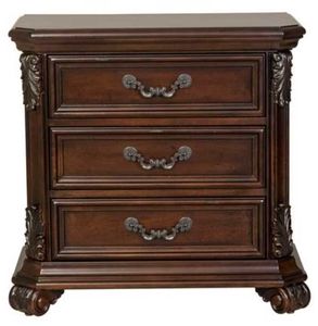 Enhance any room with this luxurious Messina Estates 3 drawer night stand while obtaining an elegant European style. Crafted with rubber wood solids and birch veneers, this piece features fully stained interior drawers, felt lined top drawers and beautifully detailed acanthus leaf overlays.Read More