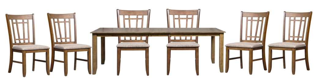 Wow family and friends with the Santa Rosa II five-piece rectangular table set. Crafted of rubberwood solids and oak veneers, this set features an antique honey finish and consists of the leg table and six lattice back side chairs.Read More