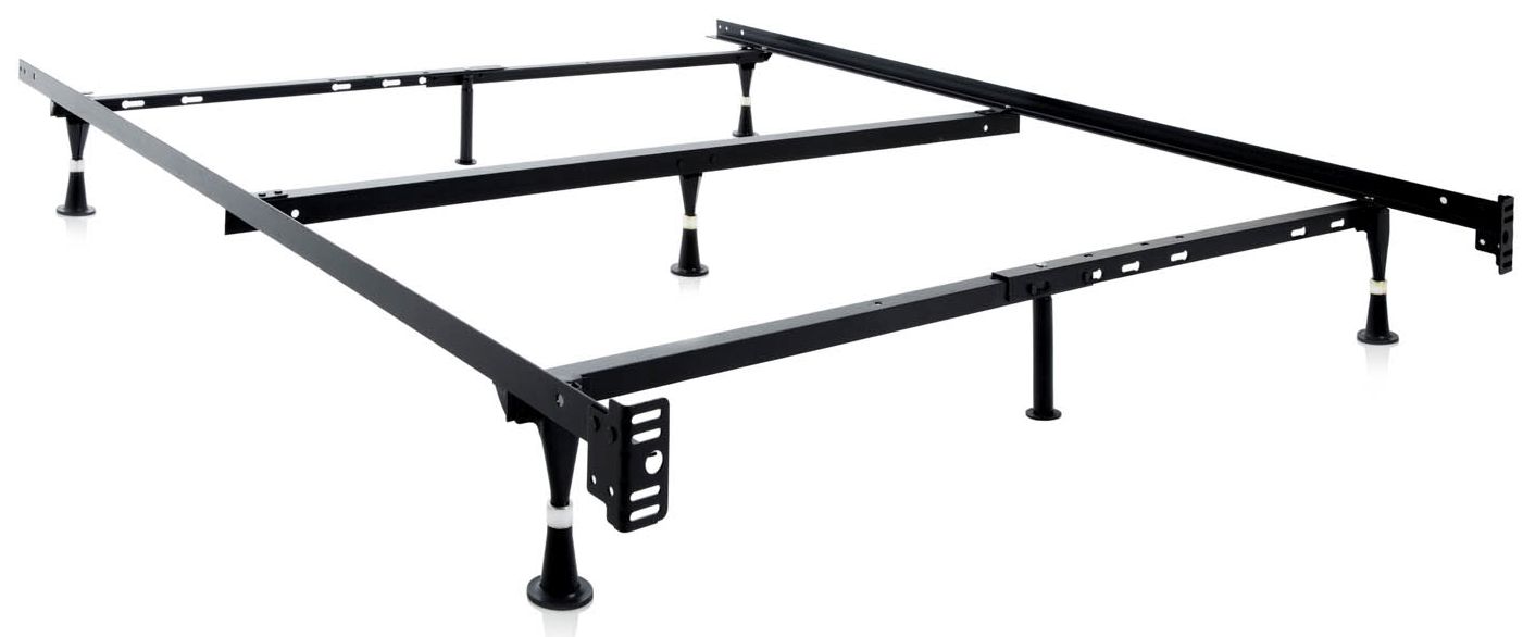 This adjustable bed frame includes multiple support features for added durability. Its primary legs are reinforced with the patented Tri-Support™ system creating optimal frame support. With six locking legs that create triple-thick steel strength and exceptional stability, the frame includes either 2.5" in-line rug rollers or 3" wide glides. Frame width adjusts from 38 inches to 53 inches with a length of 70 inches.
