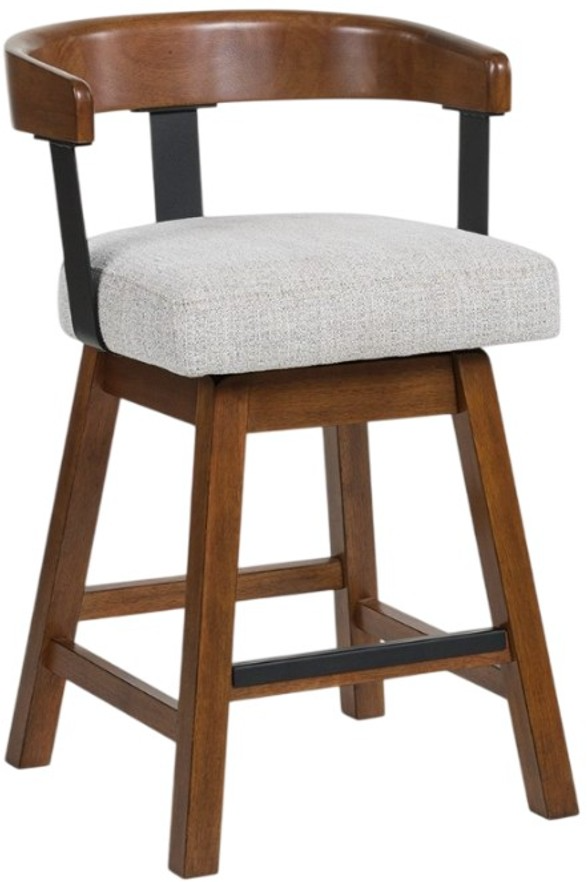 Casually styled, this counter height bar stool beautifully captures the essence of rustic refinement. Its plushly upholstered seat and gently distressed, burnished finish make pulling up a chair much more enticing. To top it off, the swivel seat and contoured back make it easy to have over-the-counter conversations in comfortable style.Read More